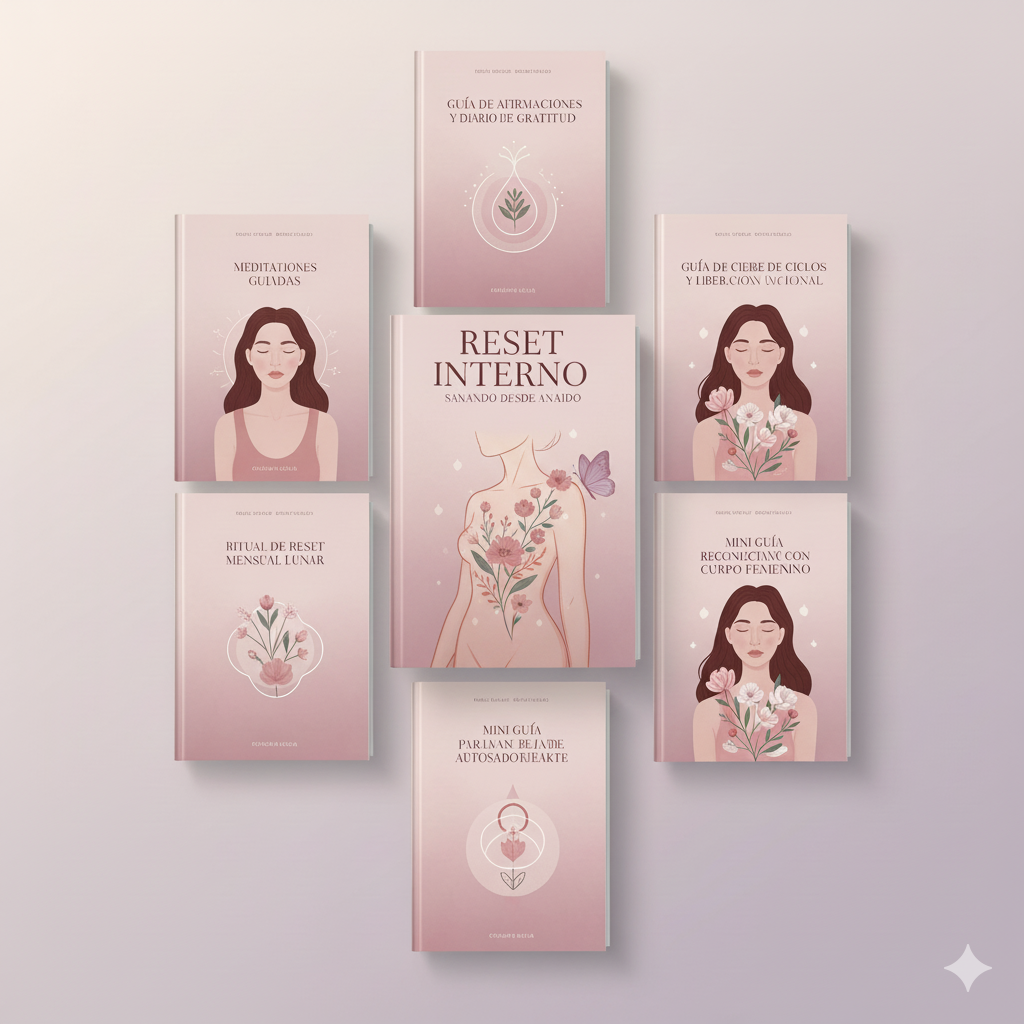 Libro digital con herramientas conscientes para sanar, reconectar y crear tu nueva versión. Incluye 6 bonos exclusivos con ejercicios reales, rituales y meditaciones para acompañar tu proceso de transformación.